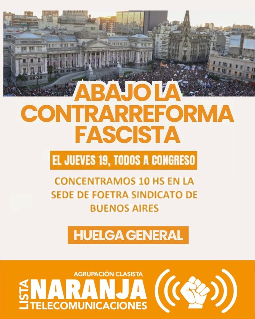 Huelga general hasta el retiro de la contrarreforma antiobrera del Congreso.