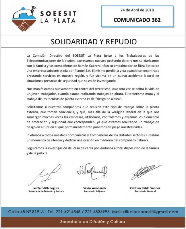 La apelación dramática de Macri al FMI plantea horas decisivas para los trabajadores. Desde la Naranja Telefónica venimos planteando la necesidad de convocar el plenario de delegados de Foetra y las asambleas de base en todos los edificios y sindicatos a nivel nacional para avanzar en la discusión salarial y frenar los avances de las empresas. Los trabajadores no podemos seguir esperando ante la inflación y los tarifazos. Como parte de esta deliberación que recorre a todos los trabajadores invitamos a participar del plenario de la Coordinadora Sindical Clasista de la Capital Federal el 17/05 en la FATPREN (Federación Argentina de Trabajadores de Prensa) por una intervención independiente de los trabajadores frente a la agudización de la crisis el gobierno y las empresas pretenden descargar sobre nuestras espaldas.