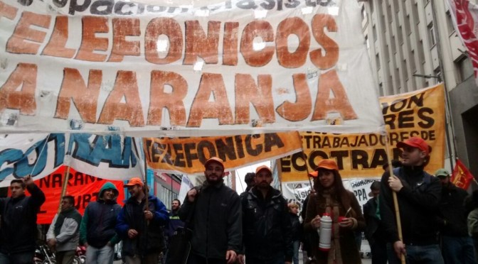 El jueves 18 de junio a las 16 horas llamamos a ganar la calle concentrando en la puerta del edificio Republica de Telefónica: vamos por el pago de los Bonos, por paritarias libres (sin techo), contra la tercerización laboral, contra el impuesto al salario y por la solidaridad activa con la lucha de los telefónicos tercerizados de UETTEL.