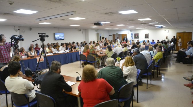 Luego Pablo Eibuszyc, Congresal de Fatel e integrante de la Agrupación Naranja que junto a Flavio Pereyra delegado del Ed. Republica participaron de la elaboracion del proyecto, destaco la importancia de esta audiencia, la presencia de importantes delegaciones del interior, la campaña de firmas, las reuniones y asambleas que colocaron la reivindicación de los Bonos en la agenda del gremio.