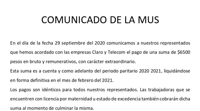 Los $6500 por única vez, primero en Telefónica, y para los próximos días en Telecom, son una tomada de pelo con empresas que ganan fortuna incluso en la pandemia. ¡Que abran sus libros contables!