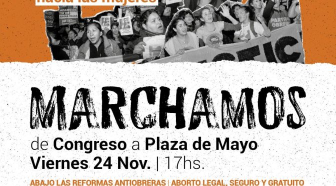 El 24 de noviembre en la Ciudad de Buenos Aires, y tanto el 24 como el 25 en diferentes puntos del país, diremos: Basta de Violencia. Abajo el ajuste y los femicidios. El Estado es responsable.