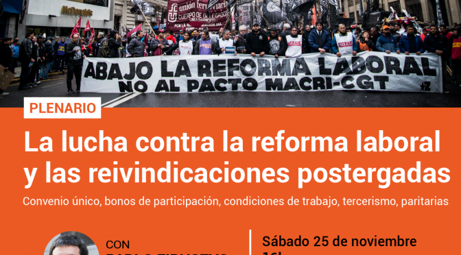 Paro, piquetes y movilización cuando se trate la reforma laboral / SABADO 25/11 16HS Plenario de la Naranja