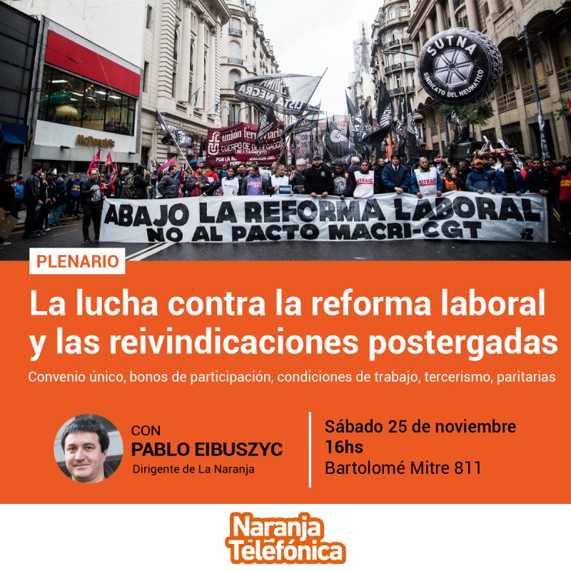 Este sábado 25/11 a las 16hs Plenario de la Naranja Telefónica en Mitre 811 1°piso