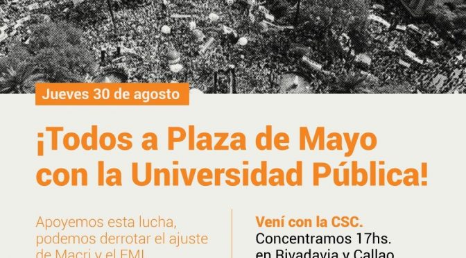 Por iniciativa del sindicato clasista AGD-UBA (Asociación Gremial Docente de la Universidad de Bs. As.) la movilización se dirigirá al centro político del país, la Plaza de Mayo. A la docencia universitaria se suman estudiantes de todos los niveles y contingentes de docentes en paro en la provincia de Buenos Aires.